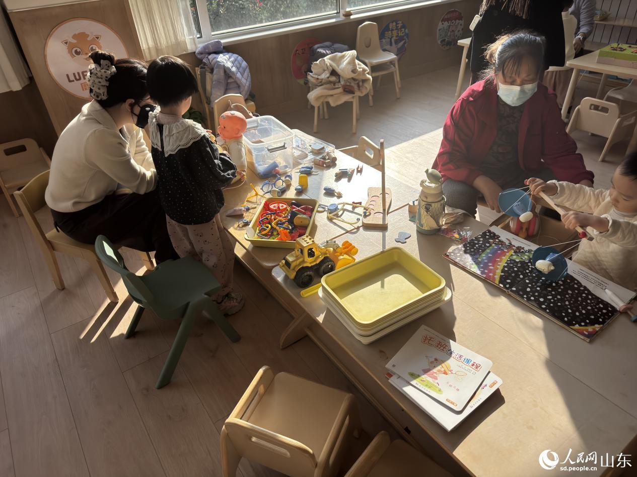 孩子们正在“呦呦启蒙苑”课堂做手工。人民网 庄润泽摄