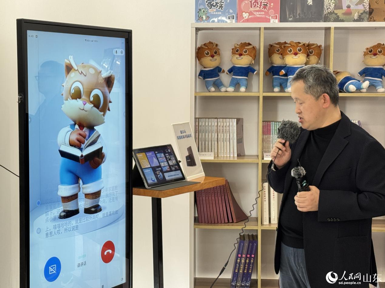 王清林正在演示与鹿非马AI教师对话。人民网 庄润泽摄