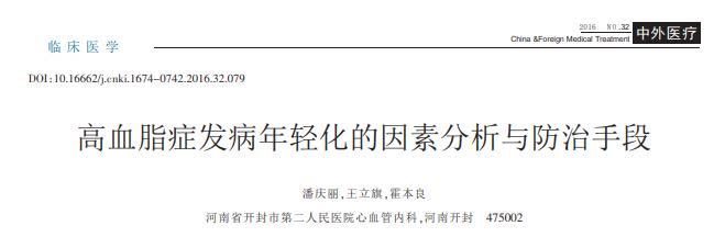 参考资料:[1]潘庆丽,高血脂症发病年轻化的因素分析与防治手段,中外医疗在线配资炒股网,2016-11-11