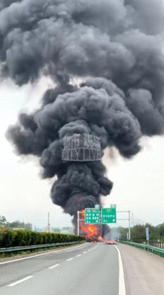 从现场画面可见,火焰裹挟着浓密黑烟疯狂翻涌,不仅吞噬了车辆本体,还快速扩散至相邻两个车道,滚滚浓烟直冲天际。
